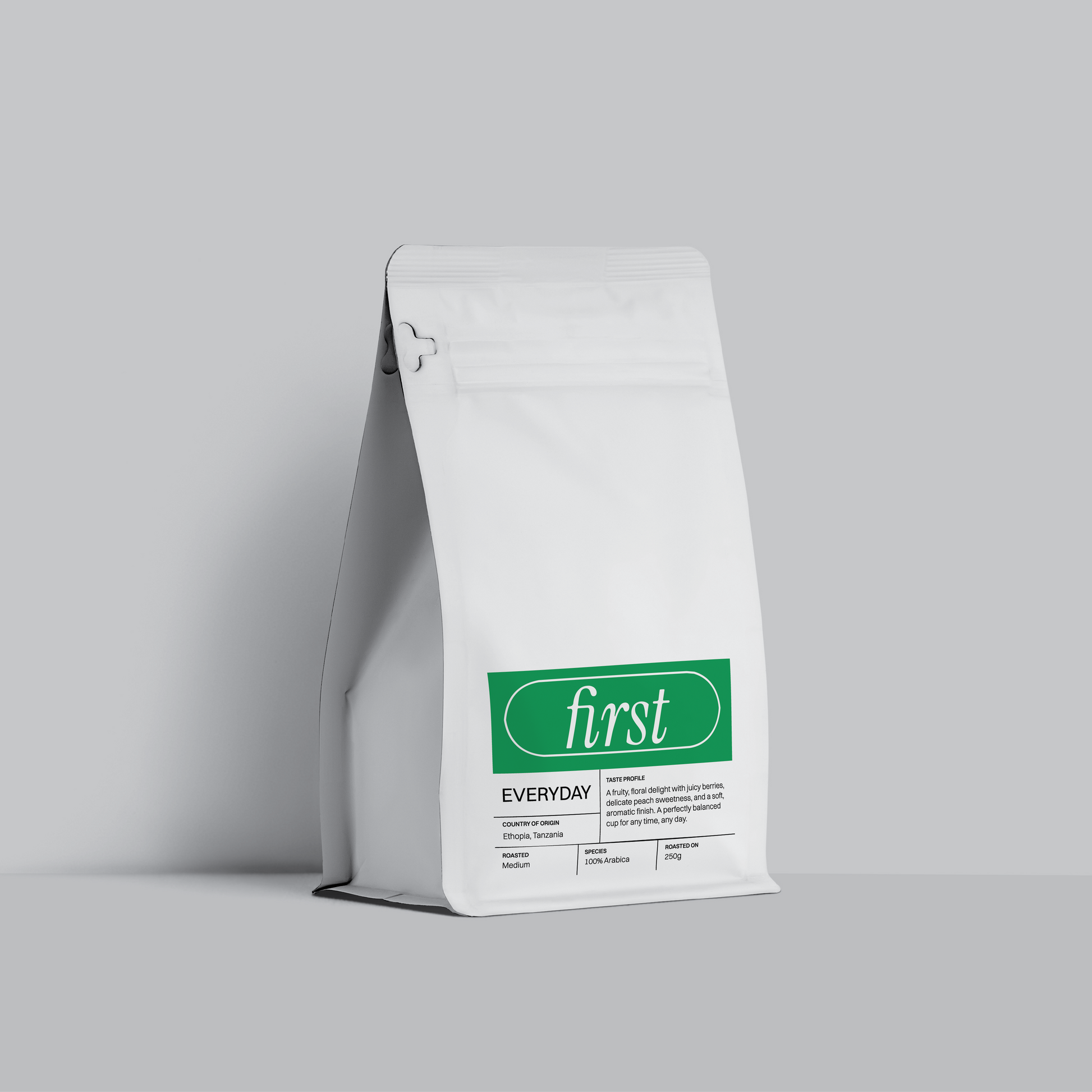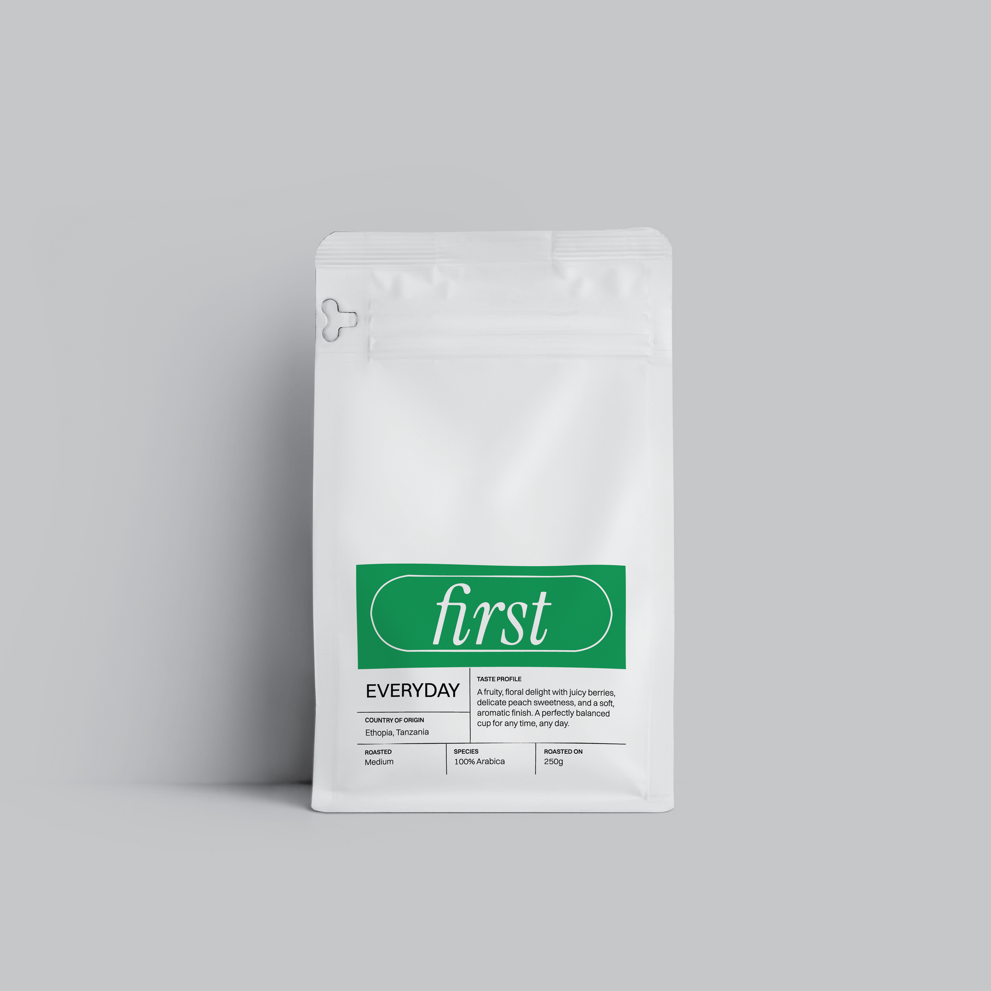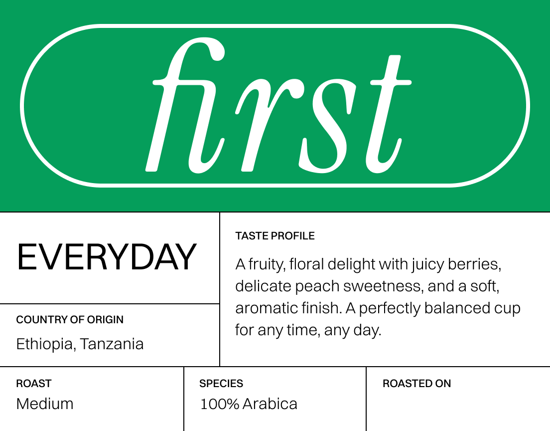 Enjoy your daily cup with Everyday, our versatile and balanced house blend. These medium-roasted 100% Arabica beans from Tanzania and Ethiopia offer delightful fruity and floral notes, juicy berries, delicate peach sweetness, and a soft aromatic finish. Easygoing and delicious, Everyday beans are your perfect companion anytime, any day.